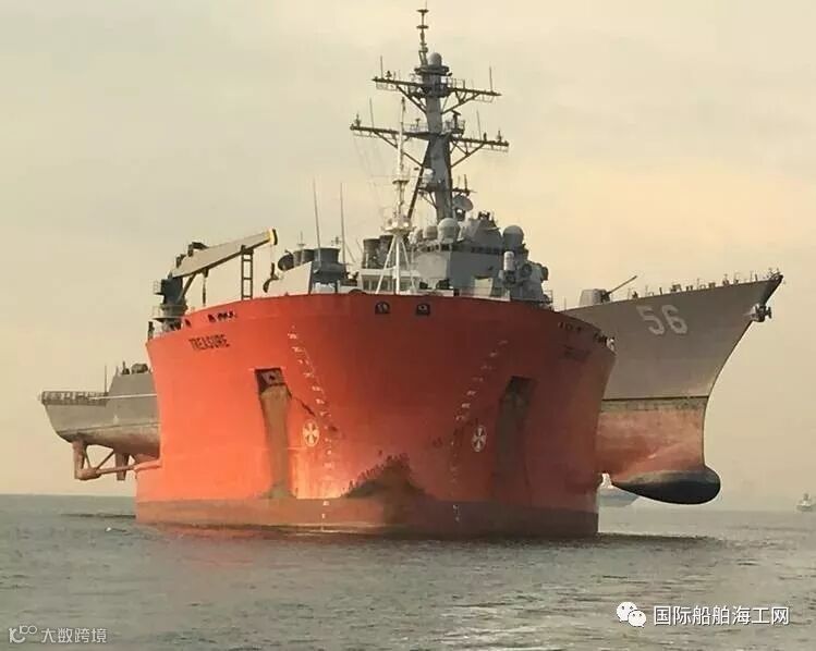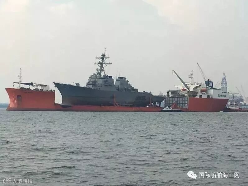 2017年美国海军第七舰队facebook官方账号当时发布信息,称运输“麦凯恩”号的是“Treasure”号重型半潜船。“”Treasure”号半潜船2008年建造于中国中远船务,由荷兰著名航运公司DOCKWISE购买,该船总长216.79米,型宽44.5米,型深14米,入级DNV,载重吨54000吨。