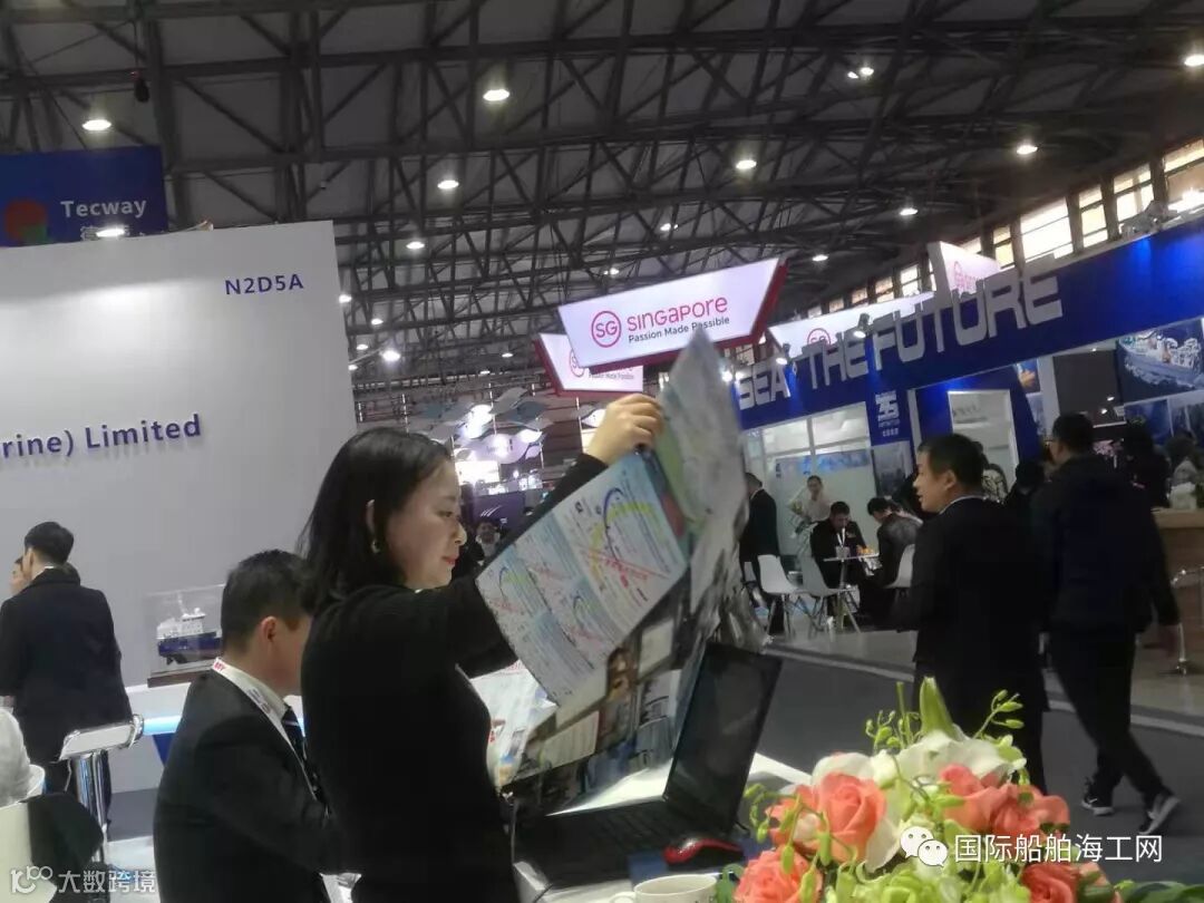国际船舶海工网的全英文地图在展览馆上与海外媒体一起展示。