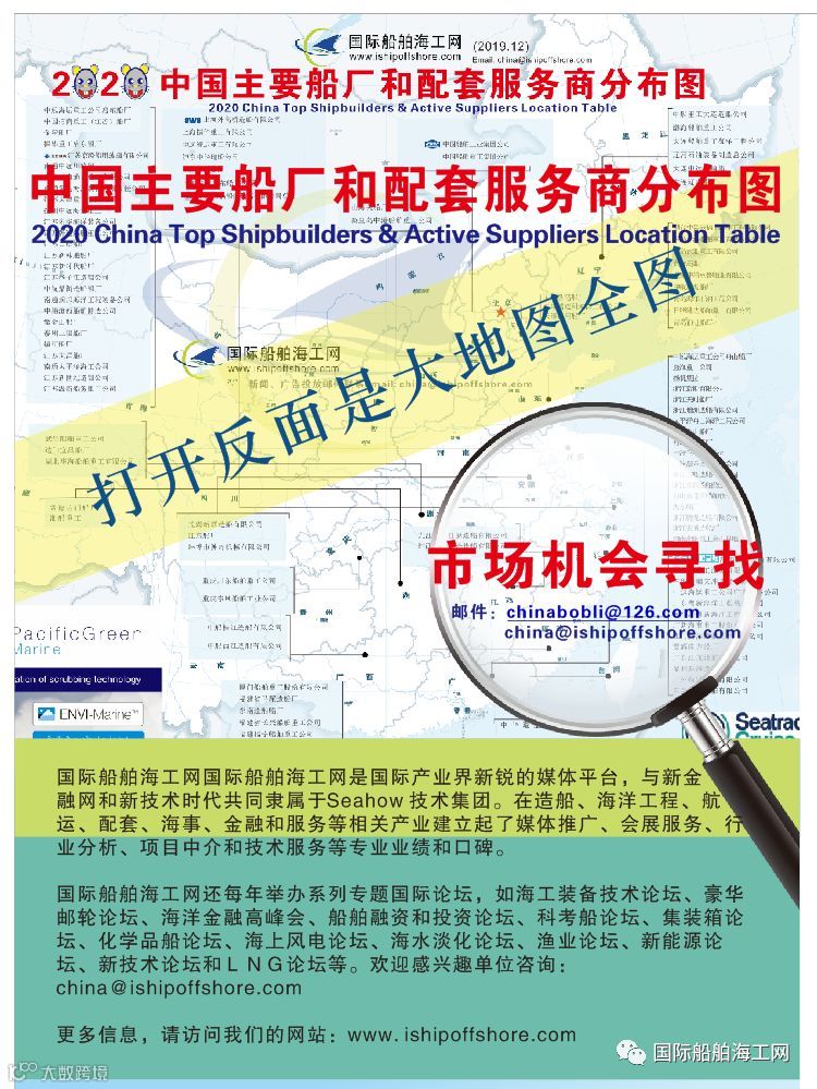 2020年新版全英文版中国造船产业分布图(简称中国造船地图)开始招商,将在2020年9月8日-11日的德国海事等展览和及期间前后举办的系列会议和论坛上发布,免费赠送给到会展览和参观嘉宾。同时将在会后,大批量免费赠送到主要船东、船厂、业主、配套商、设计公司、金融机构、投资人、业主、制造厂和服务商等手中。900元人民币起就可以在上面做广告,感兴趣单位不可错过,是瞄准海外实力客户群的好机会。咨询报名邮件:chinabobli@126.com 或者china@ishipoffshore.com。