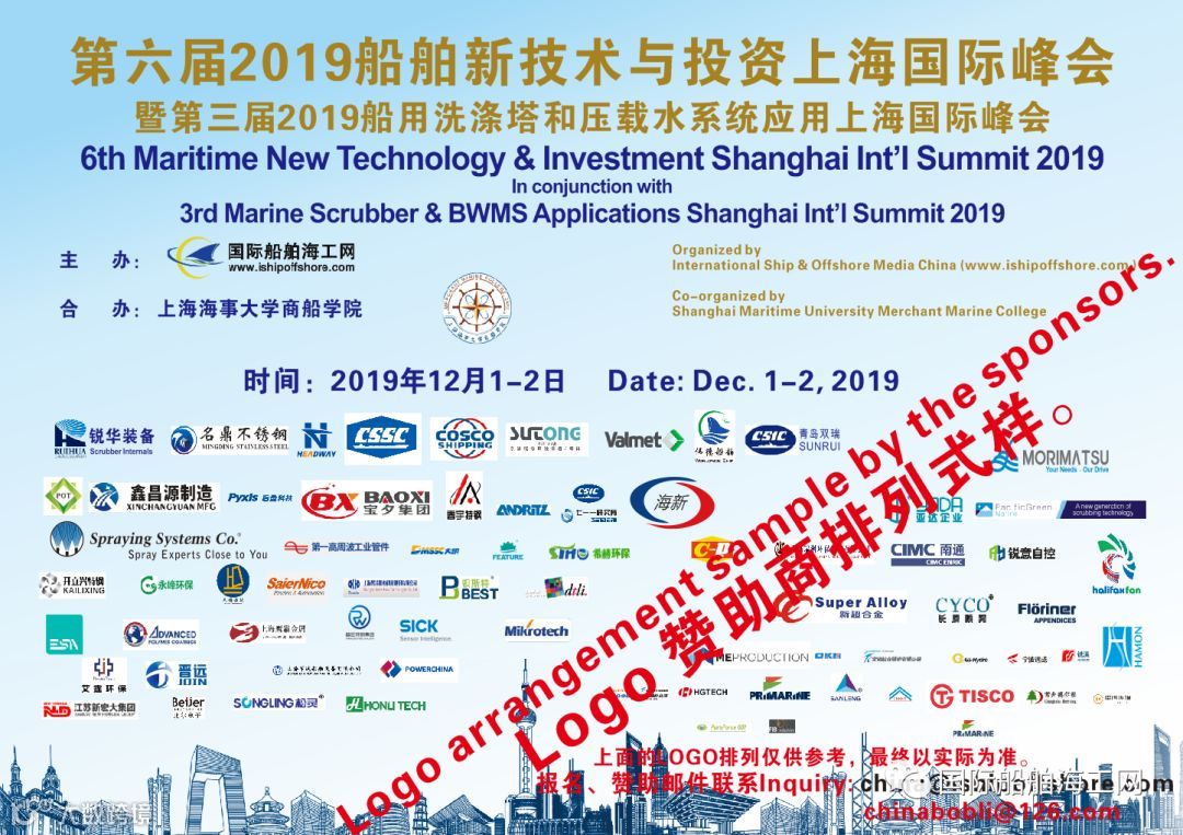 更大规模、更高规格的正在积极筹备”2019第三届船用洗涤塔和压载水系统上海峰会””和同期的“第六届2019年船舶新技术与投资上海国际峰会”,定于2019年12月1-2日将在上海市中心继续举办 。预计将有超过300多位来自来自中国、英国、美国、加拿大、德国、丹麦、挪威、瑞典、日本、法国、荷兰、比利时、芬兰、新加坡、马来西亚、韩国等国的船东、船厂、洗涤塔厂商、压载水厂商、配套厂家、设计和投资单位等报名参加,将汇聚上海,在12月3-6日的上海国际海事展前2天,交流、探讨和分享全球限硫令下船舶脱硫洗涤塔和压载水系统等的机会、挑战、合作等。