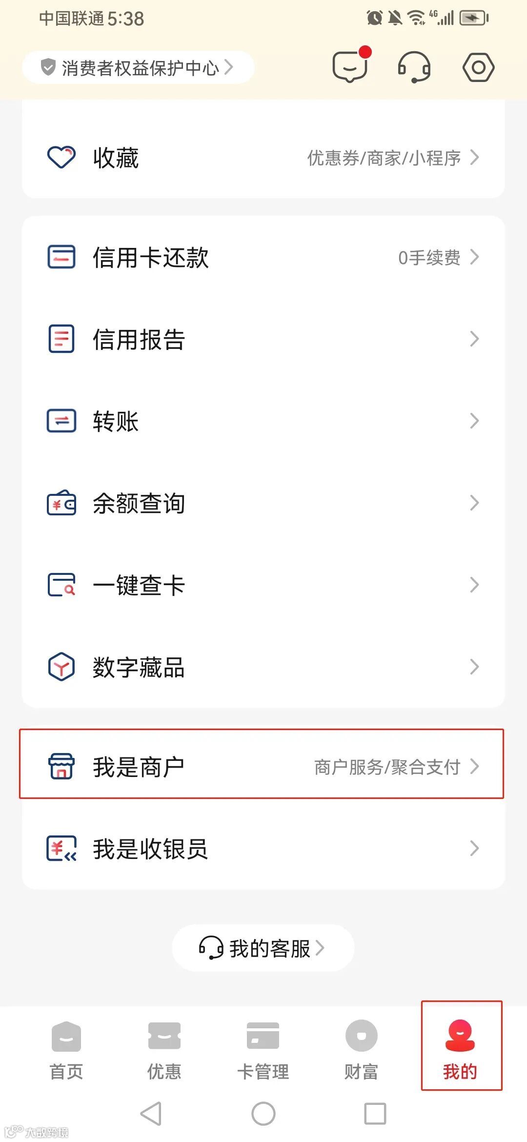 第一步:打开云闪付APP,进入个人中心“我的”,点击“我是商户”选项。