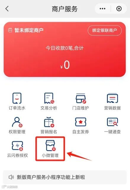 第二步:跳转至商户服务专区后,继续点击“小微管理”。