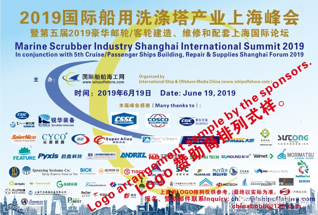 为探讨绿色地球和人类文明进步在海事领域的新动向、新挑战和新机会,将于2019年6月19日在上海市中心维也纳国际酒店举办“2019国际船用洗涤塔产业上海峰会”和将于2019年12月1-2日举办“2019第二届船用洗涤塔和压载水上海论坛”及将发布免费公开版2019-2025船用洗涤塔研究报告都得到了国际社会和产业界的普通关注,来自中国、英国、美国、加拿大、德国、丹麦、挪威、瑞典、日本、法国、荷兰、芬兰、新加坡、马来西亚、韩国等国海事、航运、造船、投资、科技、高校等背景的著名中外企业和单位纷纷报名参加。