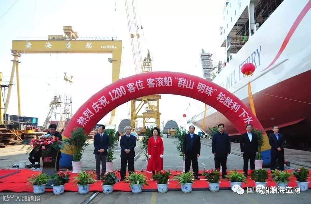 3月14日,黄海造船有限公司为华佳国际船务有限公司建造的1200客位/1680米车道豪华客滚船“群山明珠”轮顺利下水。