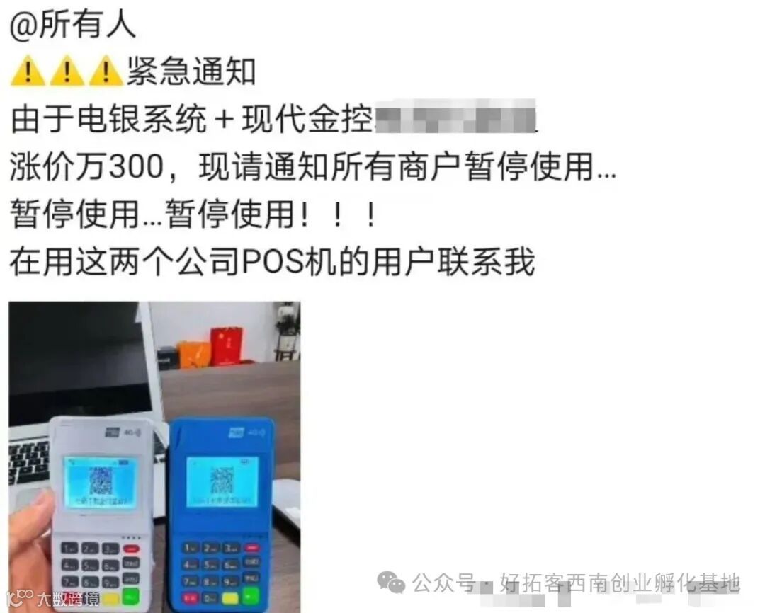 好拓客西南创业孵化基地近日,有2款POS机费率暴涨,刷爆支付圈。