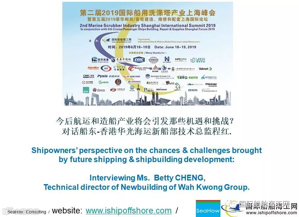 更大规模、更高规格的“第三届2019国际船用洗涤塔和压载水系统产业上海峰会 ”暨“第六届2019船舶新技术与投资上海国际峰会”正在积极筹备,定于2019年12月1-2日将在上海市中心继续举办 。预计将有超过300多位来自来自中国、英国、美国、加拿大、德国、丹麦、挪威、瑞典、日本、法国、荷兰、芬兰、新加坡、马来西亚、韩国等国的船东、船厂、洗涤塔厂商、压载水厂商。配套厂家、设计和投资单位等报名参加,将汇聚上海,在12月3-6日的上海国际海事展前2天,交流、探讨和分享全球限硫令下船舶脱硫洗涤塔和压载水系统以及船舶新技术发展和投资实践等的机会、挑战、合作等。报名邮件: chinabobli@126.com 或者 china@ishipoffshore.com