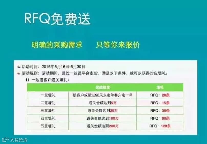 活动规规:活动期间,通过一达通平台走货,满足以下条件,就可以获得对应壕礼。