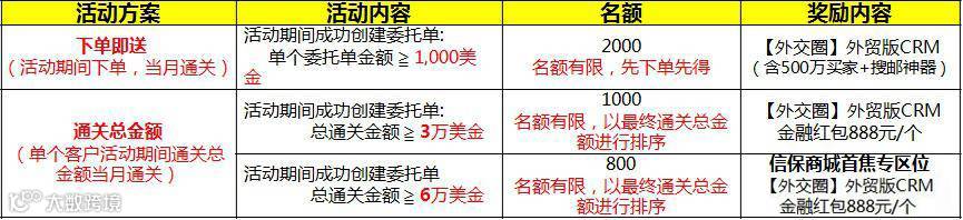 3、资源有限,先到先得。以同一个客户ID最终通关总金额GMV进行排序,若通关总金额GMV相同,则以在活动期间内,下委托单时间先后顺序进行排序;