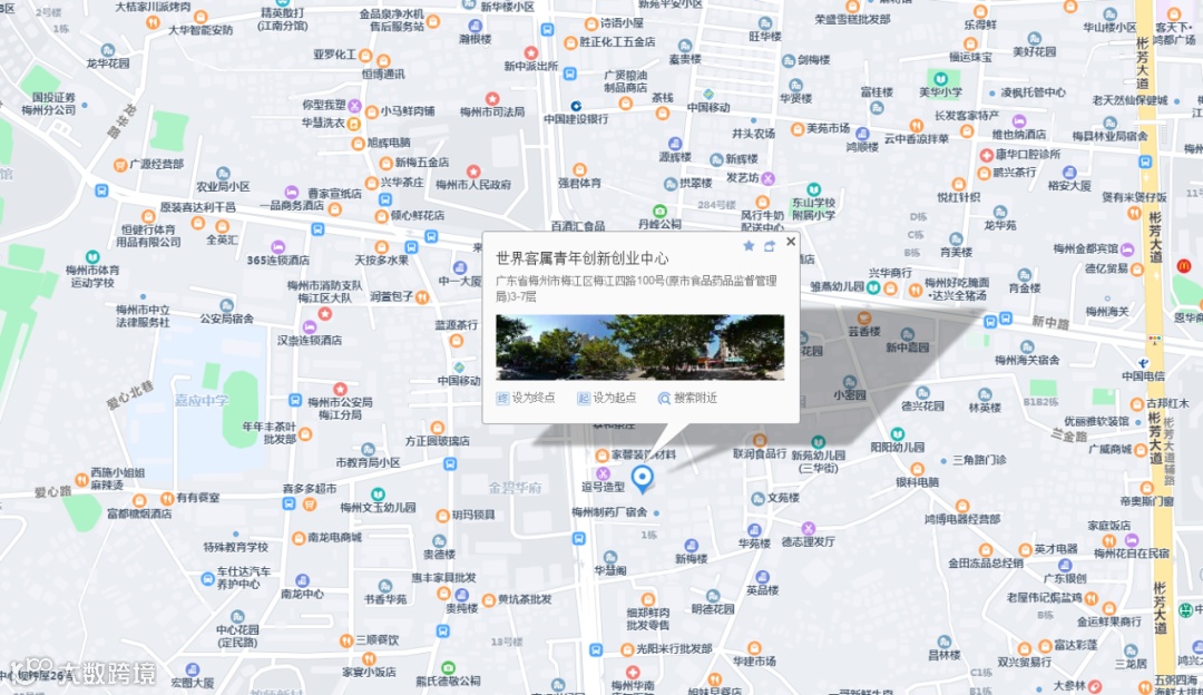青创中心坐落于广东省梅州市梅江区梅江四路100号(原市食品药品监督管理局),地处梅州市政府旁,地理位置优越,交通便利,15分钟内可畅达各市职政府单位及行政服务大厅。
