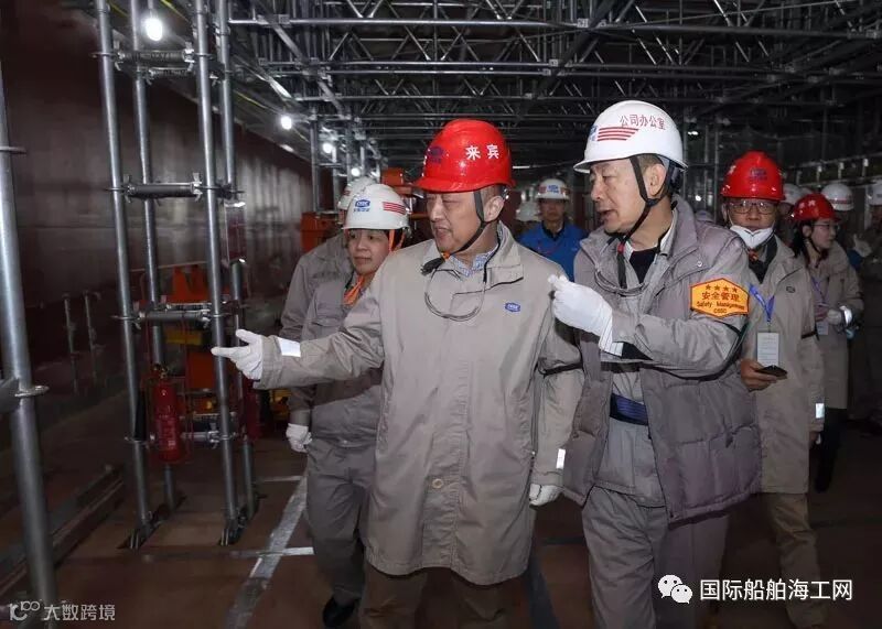 南大庆一行查看了达飞22000箱船燃料舱建造现场,检查了首制船的入坞状态。集团船舶海工部、沪东中华、江南造船、708所、贸易公司、物流公司、中船三井等单位领导及相关人员陪同调研。