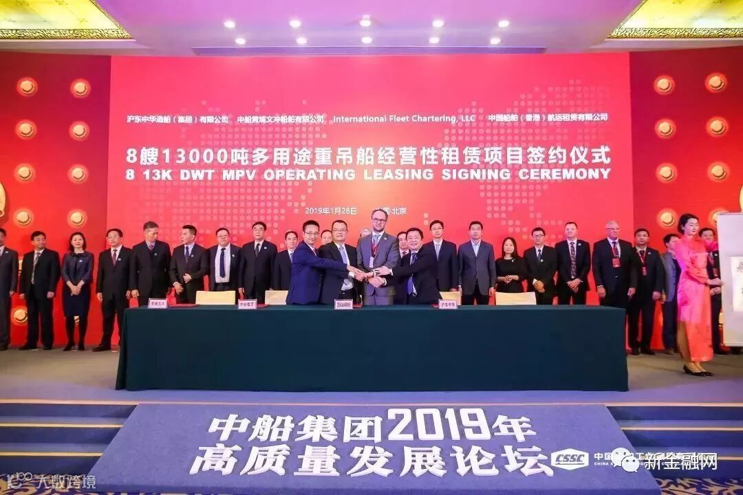 新年新气象,船市传佳音。1月28日,中国船舶工业集团有限公司2019年高质量发展论坛暨中船租赁项目签约仪式在北京钓鱼台国宾馆举行。中船集团旗下中国船舶(香港)航运租赁有限公司与PANGAEA、ZEAMARINE等多家公司分别正式签订了7个项目、共计36艘新船、总金额超过100亿元人民币的合同,标志着中船集团以融促产助推高质量发展实现重大突破。
