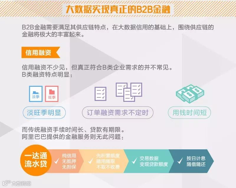 大数据解决中小企业融资难题已经不是新闻,但真正落地目前还寥寥无几。1月13日全球B2B生态峰会上,阿里巴巴B2B事业群金融事业部总经理李多全提出了大数据融资的具体解决方案,依托阿里电商大数据和技术,改变中小企业融资难问题。