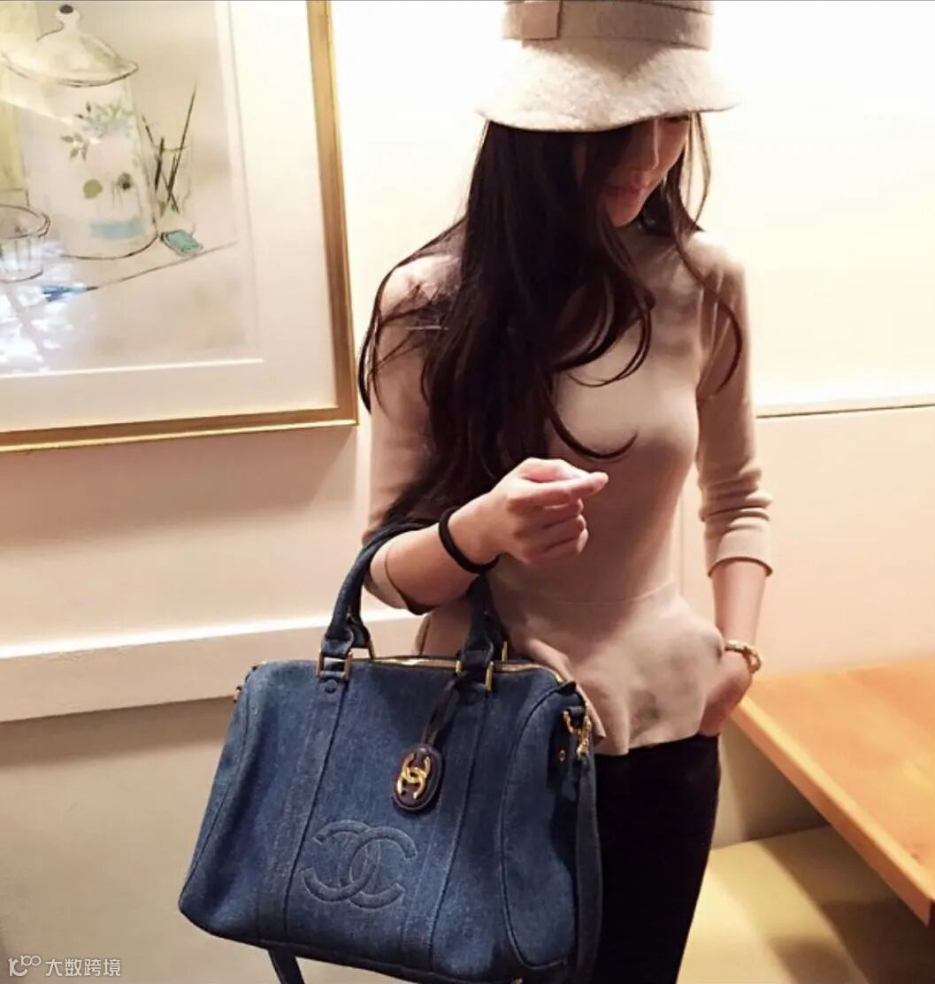 Vintage Chanel的波士顿手提包已经绝版,容量巨大,相当适合出行和通勤,Angelababy手拎牛仔波士顿包尽显淑女范儿,高雅大气。