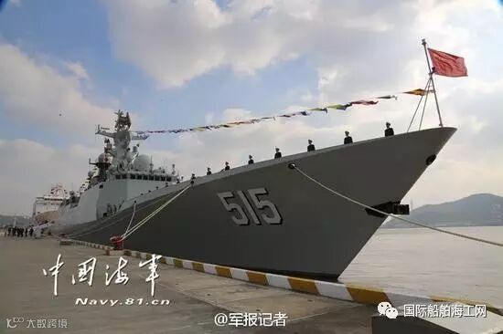 滨州舰舷号515,舰长140米,宽16米,满载排水量4000余吨,配备多套我国自主研发具有世界先进水平的武器系统,可单独或者协同海军其他兵力攻击敌水面舰艇、潜艇,具有较强的警戒探测和综合作战能力。该型舰是我国海军新一代主力作战舰型,列装海军以来先后完成过索马里护航、利比亚撤侨、联合军演、环球访问等一系列重大军事和外交任务,赢得广泛赞誉。