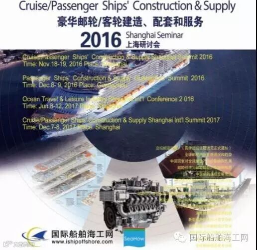 今后未来几十年,围绕豪华邮轮的建造、配套、投资、服务和管理,中国将形成一条全新的庞大产业链。为了策应中国挥师豪华邮轮产业,响应国内外产业界交流、探讨、合作、对接和把握机会的需求,尤其是响应来自金融机构、船厂、配套商、投资人、船东和行业管理的建议,国际船舶海工网将在各方支持下积极在中国主要城市举办一系列豪华邮轮和客轮建造、配套、投资、服务和管理论坛。今年10月、11月、12月和明年6月、12月等时段将有系列豪华邮轮产业论坛举办。