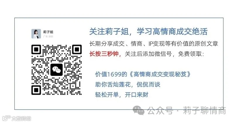 点击文章开头,关注:莉子聊高情商成交,不错过精彩内容。