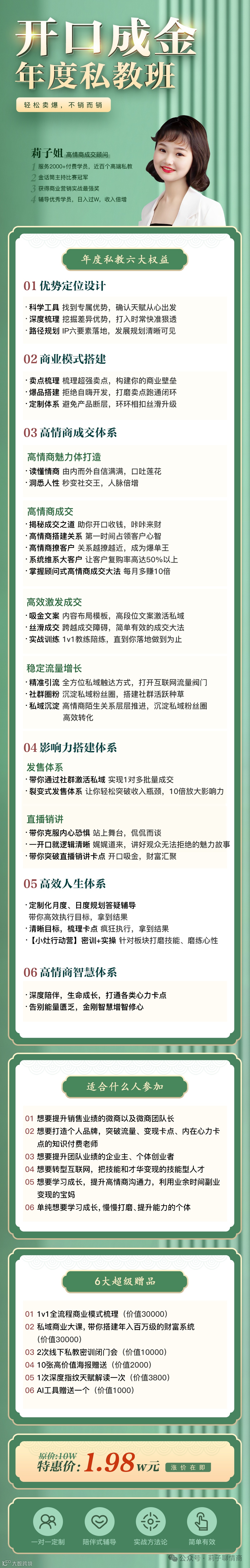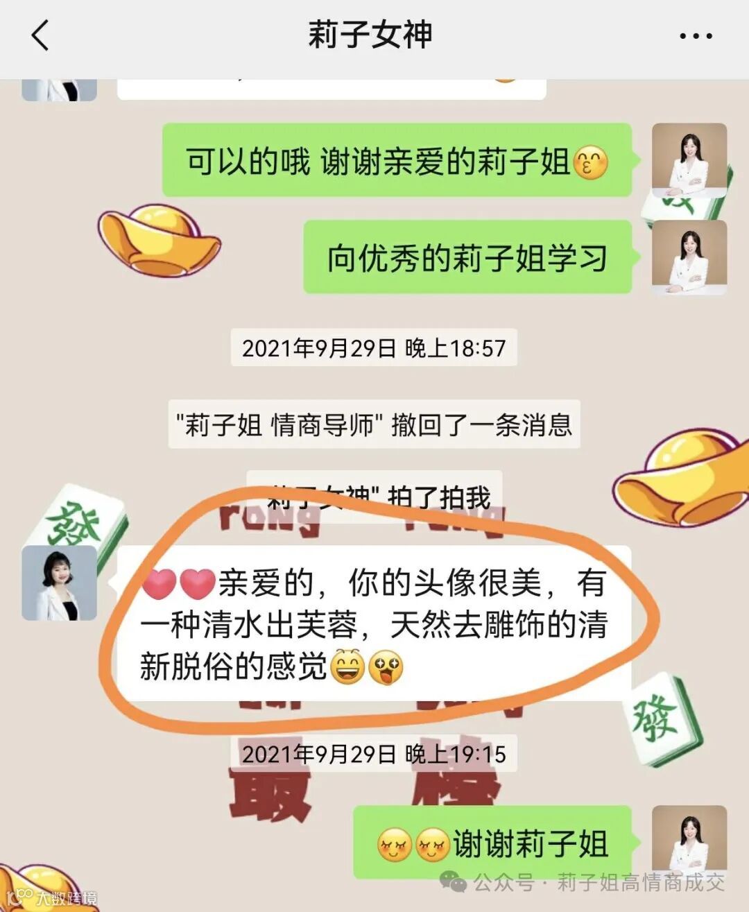 欢迎添加下方👇🏻莉子姐的微信,回复暗号:我渴望成长,免费赠送你价值1699的《高情商成交变现秘笈》,助你开口来财。