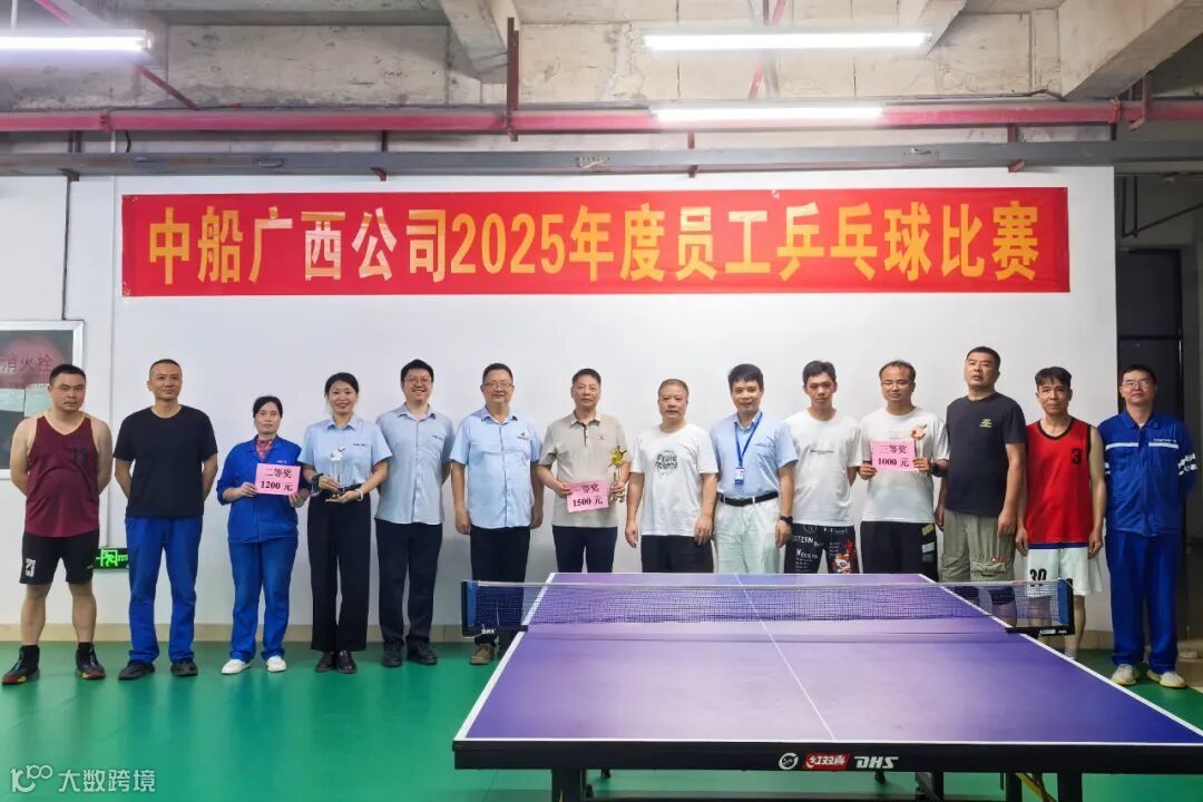 为丰富职工业余文化生活,增强团队凝聚力,践行“幸福中船人”行动,中船集团下属中船广西公司工会在7月底组织职工开展了2025年度员工乒乓球比赛。经过近半个月的角逐和比拼,本次比赛在8月4日晚上顺利落幕。