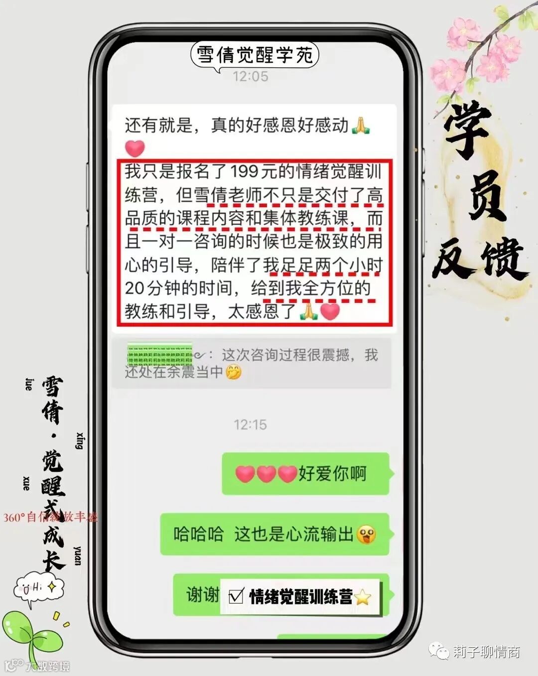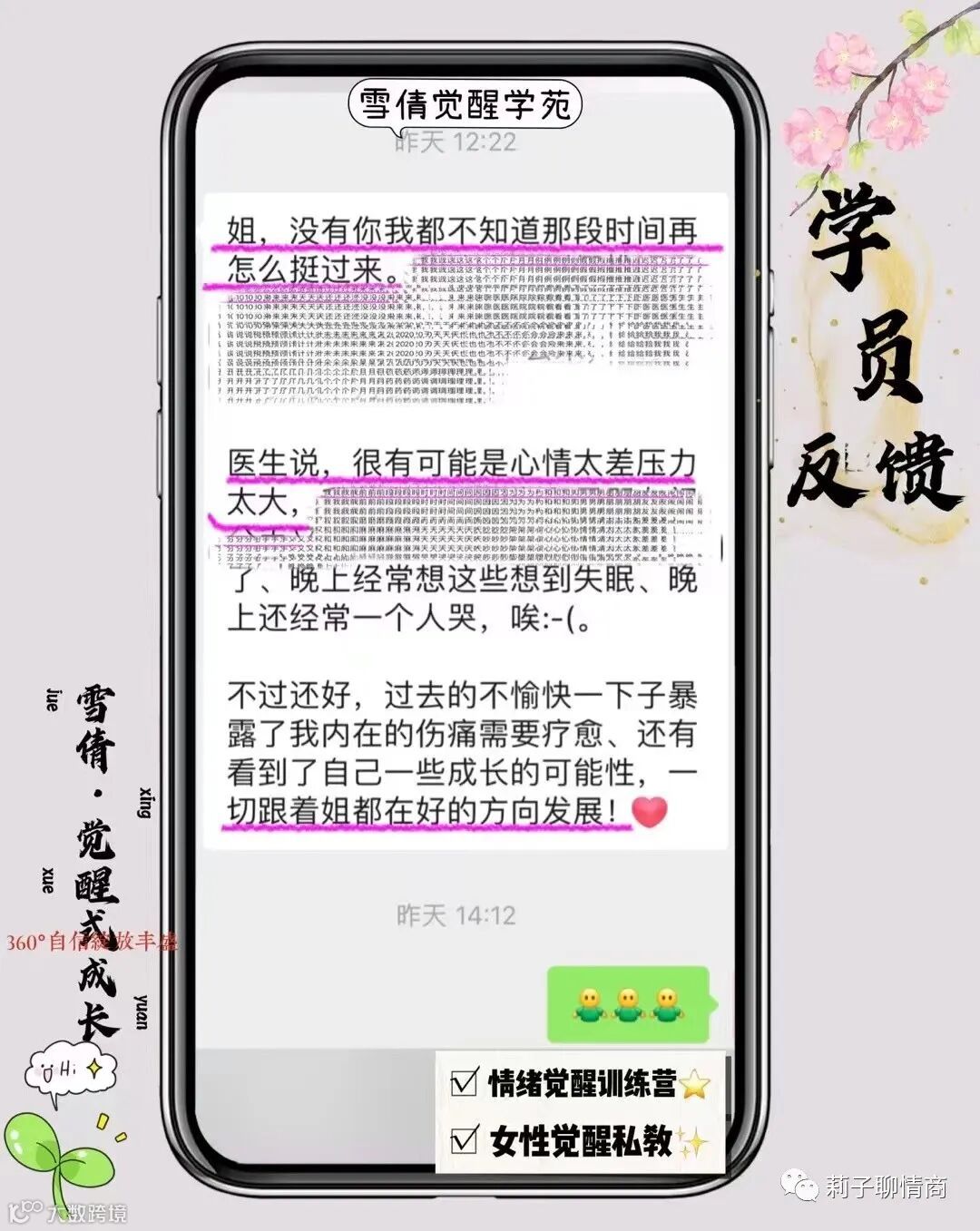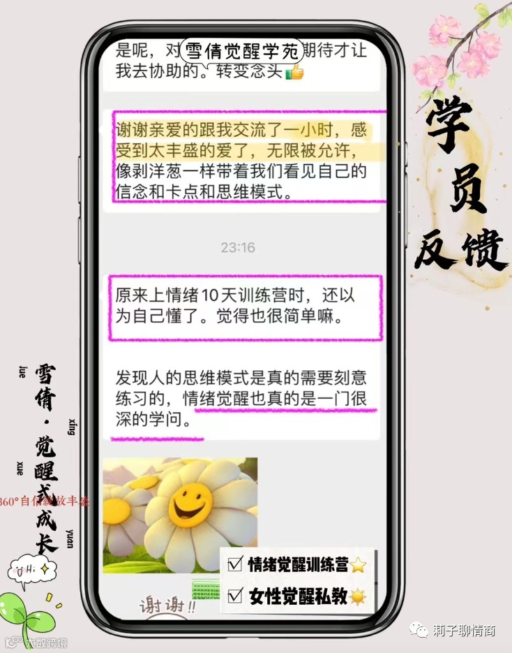 在情绪、关系、觉醒式成长 ,疗愈原生家庭等维度,我是奔着这个自我要求去的:带学员拿结果!