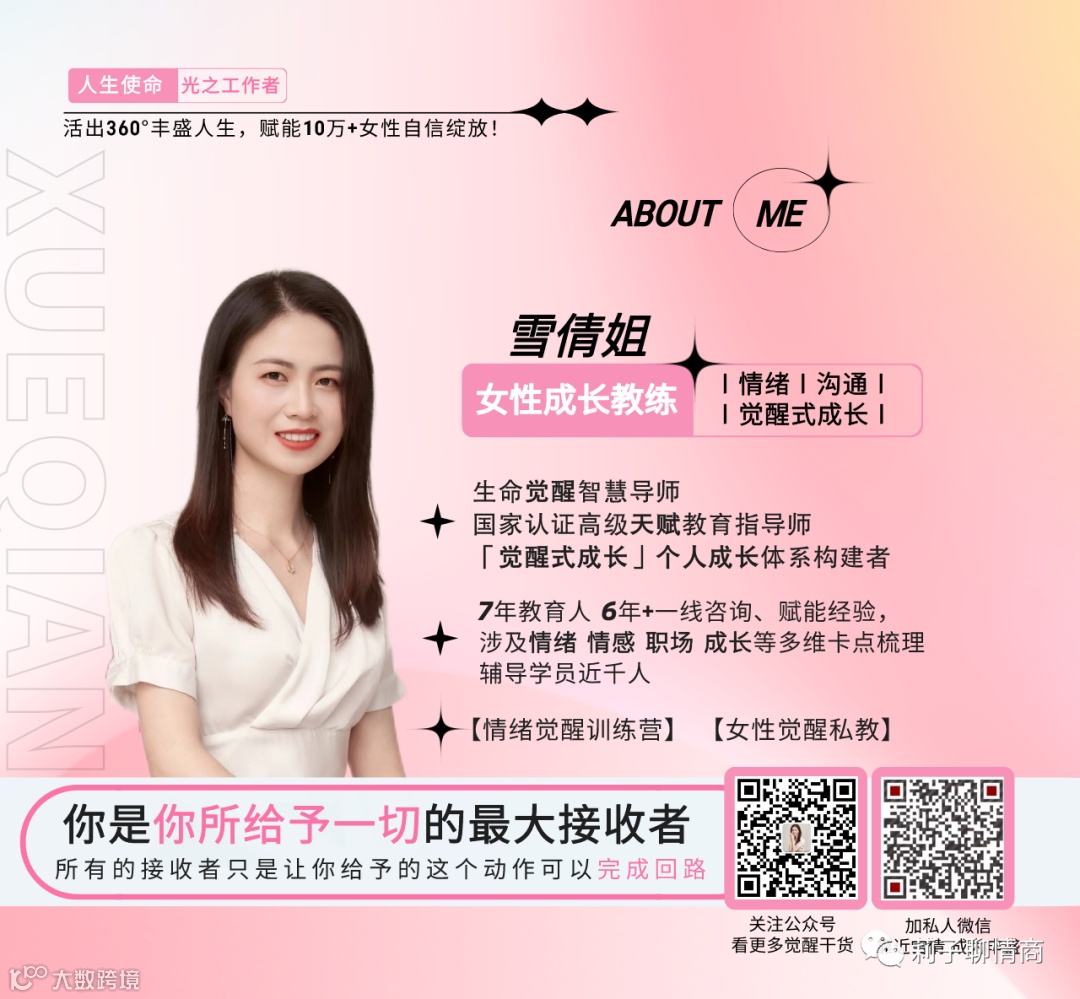 我是雪倩,女性成长教练,深耕女性觉醒启发