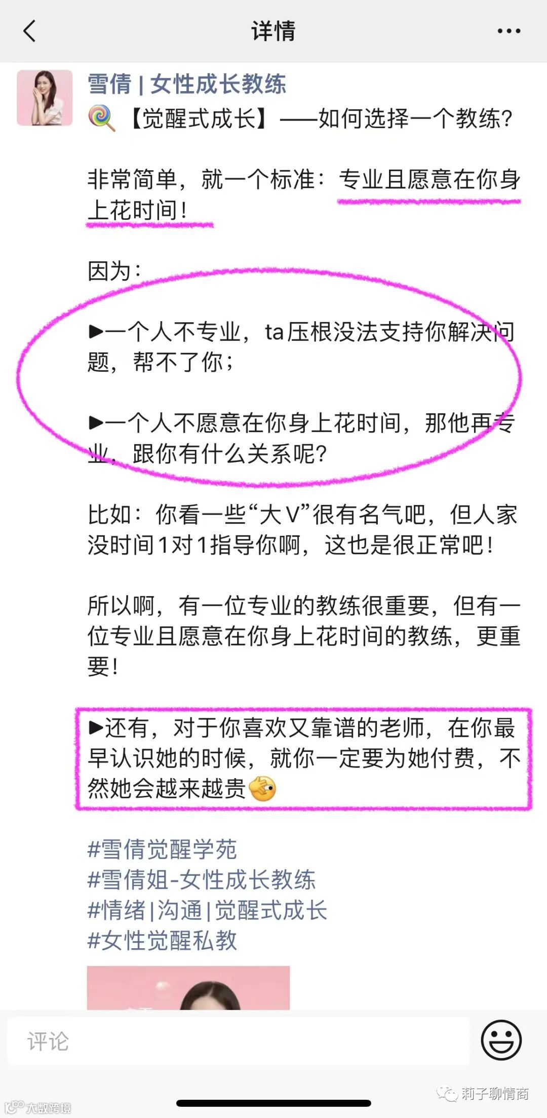 在最后,给你分享:【选择教练的唯一标准?】