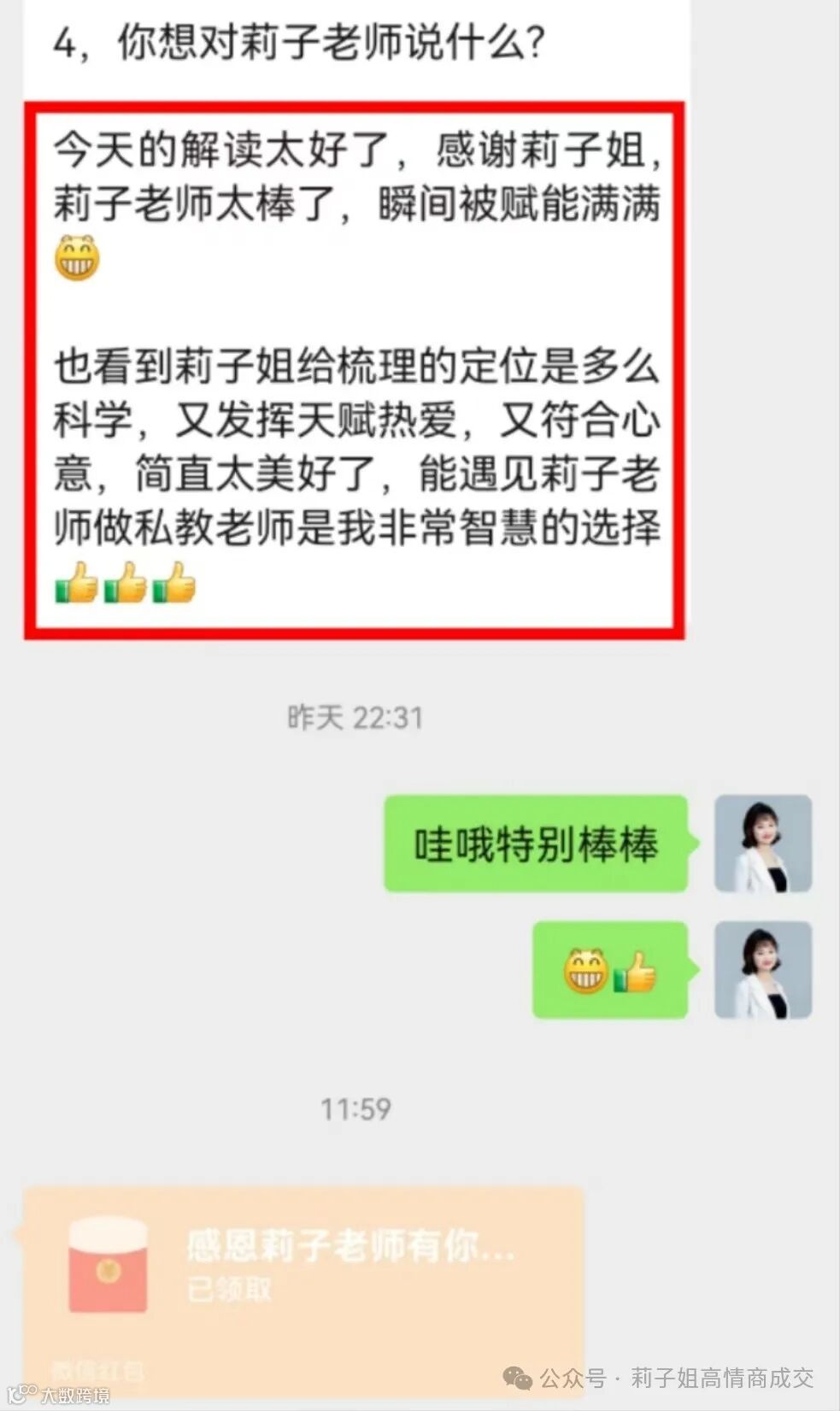 我是一个非常会赞美的商业教练,前段时间,给一些年度私教做天赋解读(我额外送他们的福利)