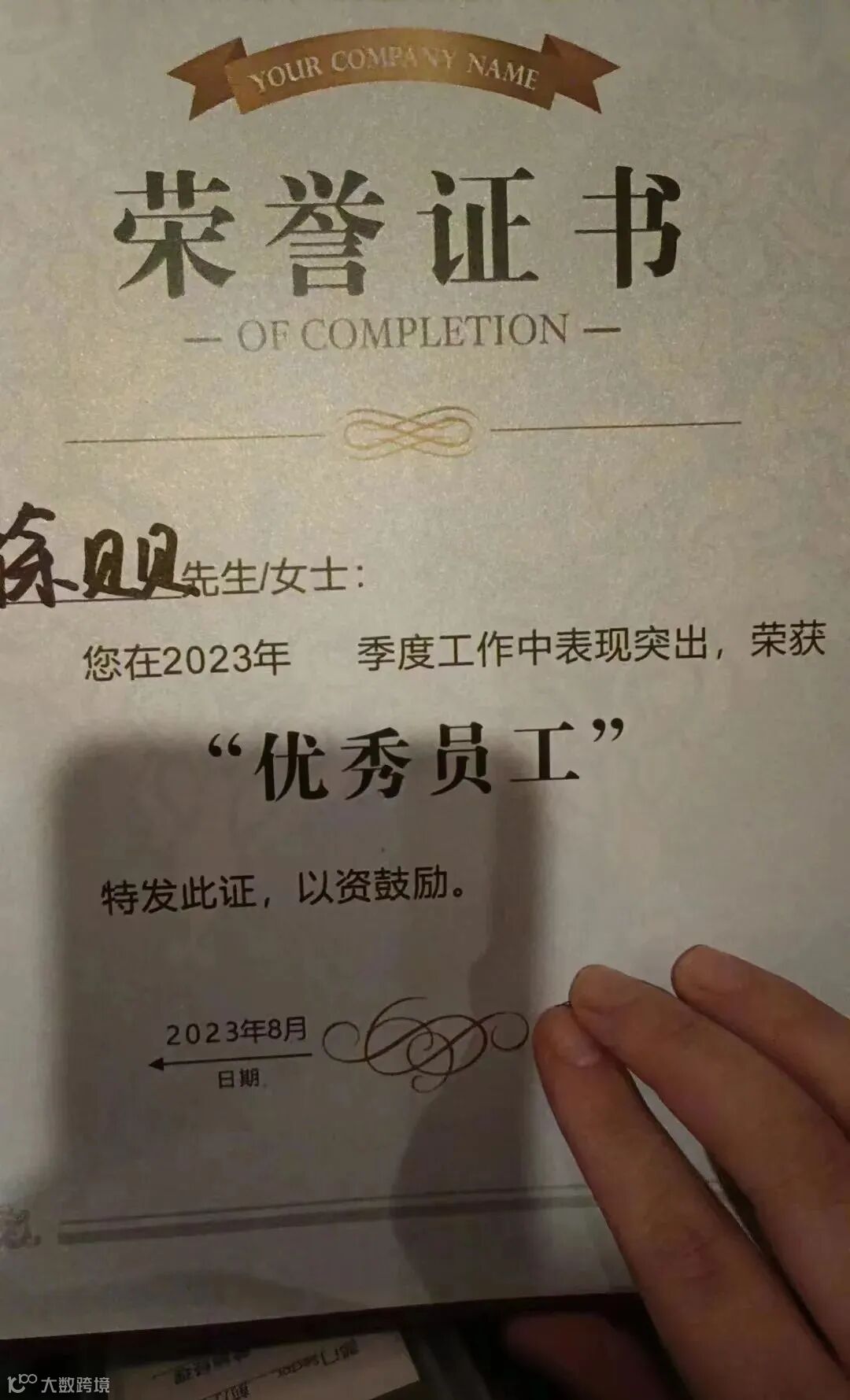 新领域只用了3个月时间,做到了销冠,并获得公司的5天国内旅的奖励!