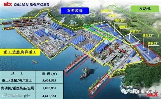 STX大连十三家公司系全球第四大造船企业韩国STX集团在中国大连独立投资的造船海洋综合生产基地,其坐落于我国渤海湾大连长兴岛临港工业区(现为“大连长兴岛经济区”),占地面积近7000亩,涵盖零部件生产、分段制造、发动机装配、船舶和高附加值海洋工程建造等多个方面,是一个拥有一条龙式垂直系列化生产体系的造船海洋综合生产基地,其拥有独立岸壁、自有使用海域等得天独厚的深水岸线资源,其拥有全球超大规模的海洋工程建造设备设施,具备年产80艘各类大型船舶的产能,能生产散货船、汽车运输船、矿石运输船、集装箱船、铺管船、浮式储油船、LNG船、成品油轮等各类船舶。