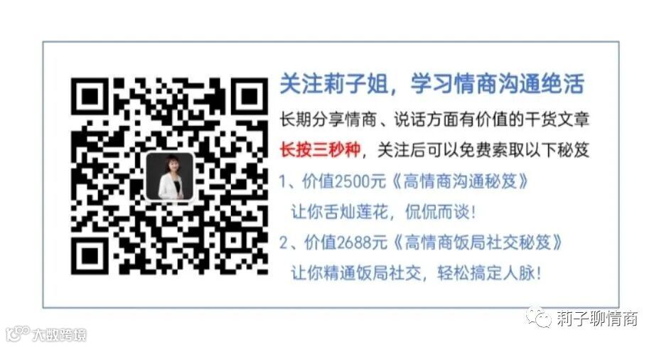 在接下来的文章中,我会给你持续分享成长干货、情商干货,不要错过哟,记得点击上方关注公众号:莉子聊情商。