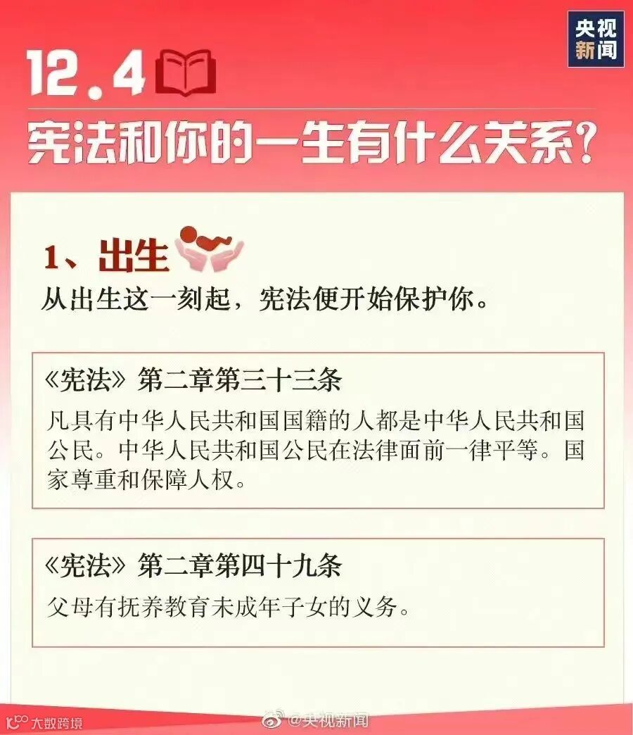 宪法离我们从来都不遥远,在人生的每一个重要时刻,宪法都默默地保护和陪伴我们,你我的一生都与宪法息息相关。