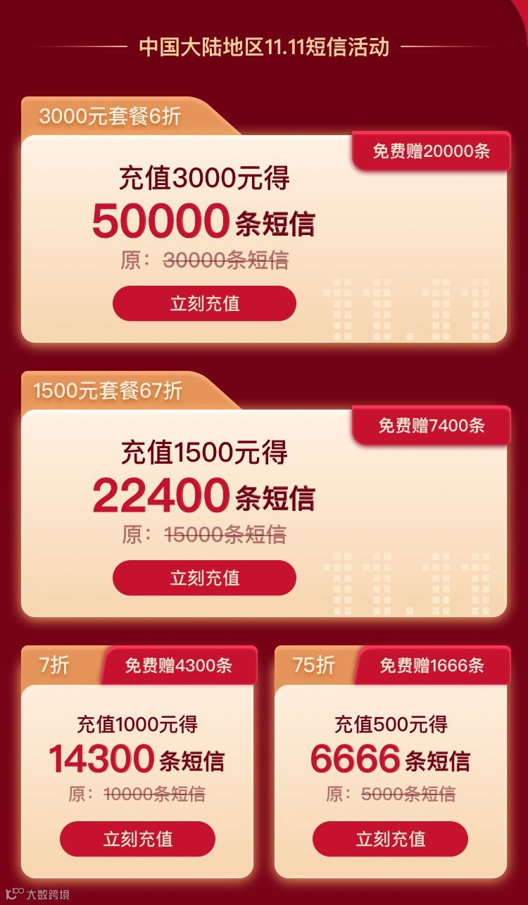 6月份二维火年中短信大促,老板们“囤短信”就比往年积极的多。为了感谢所有老板们一整年的支持,今年双十一,二维火决定: