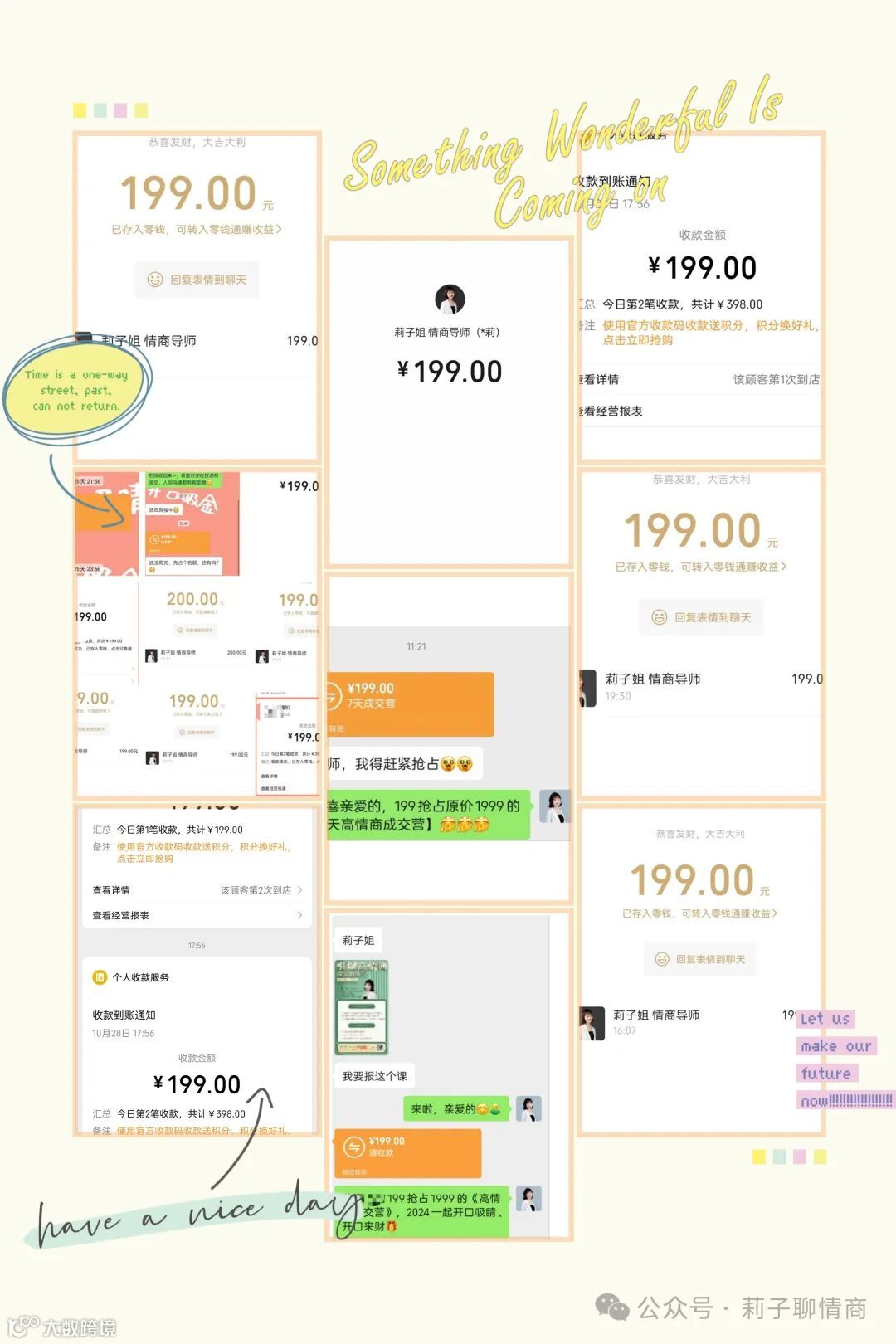 如果,你也想在新的一年,开口吸金、咔咔变现、被客户追着付款,欢迎微信转账199,抢占名额!