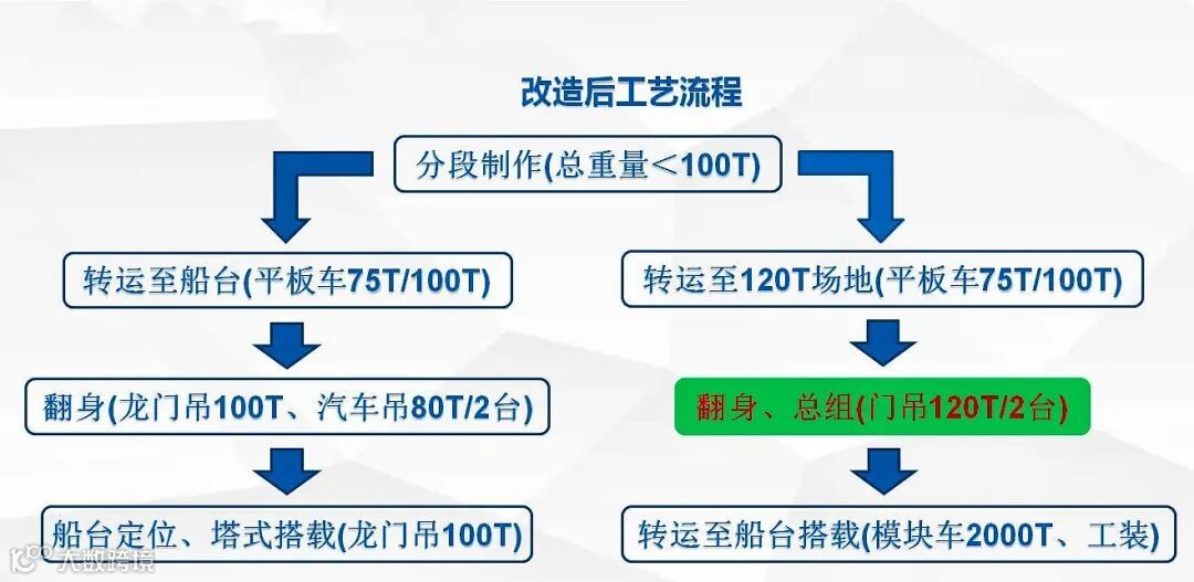 面对繁重的生产任务,为解决全船串联式搭载定位次数多,对船台建造周期影响明显的问题,技术中心迎难而上,探索推进船台工艺流程革新改造,积极深入现场调研,策划将原来的搭载模式改良成大型环段总组搭载模式,预计较大缩短斜船台搭载周期,将成为解决公司在建产品周期紧问题的有效途径。