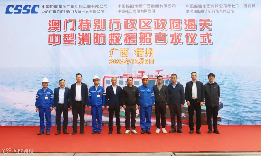 12月6日,在澳门行政区回归25周年之际,由中国船舶集团广西造船有限公司所属桂船公司建造的中国澳门海关中型消防救援船“R-2”号顺利下水。澳门海关船队支援处、澳门海事及水务局政府船坞建造处、中国船舶集团广州船舶工业有限公司、武汉船舶设计研究院有限公司及公司相关领导参加下水仪式。