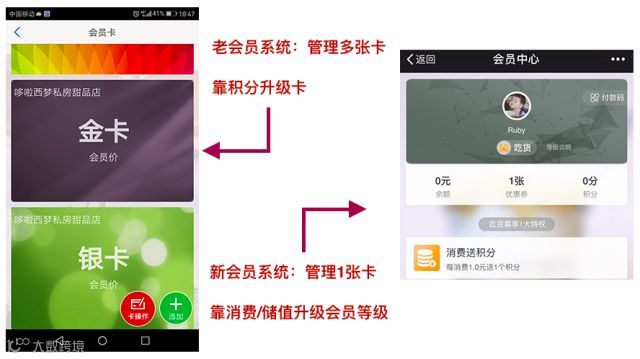 老会员系统“会员卡”有一套升级体系,“会员等级”也有一套升级体系。顾客难理解,老板管理也复杂;