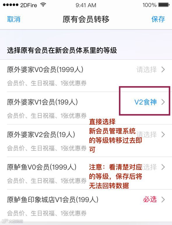 一定要考虑清楚,老会员系统的会员要转移到新会员等级的哪一个等级中。操作前最好拿笔写一下,然后对照着进行火掌柜上的操作。