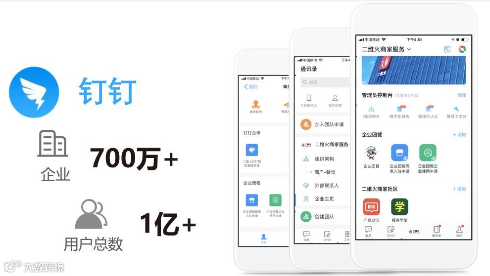 钉钉,是阿里巴巴集团打造的全球最大企业级智能移动办公平台,是企业数字化管理运营操作系统。超过700万家企业组织和1亿多企业用户正在使用钉钉,钉钉正在共享各行各业优秀的工作方式,帮助中国企业进入智能移动办公时代。
