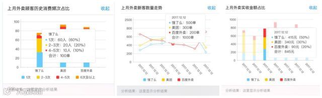 此外,还会对外卖的顾客消费频次、新客走势、外卖占餐厅整体收入的占比做出具体分析,让商家对店铺的外卖情况做到心中有数,从而调整外卖占餐厅整体发展的比例,是增加外卖投入,还是将重心放于堂食,为餐厅的规划发展提供数据清晰的参考意见。