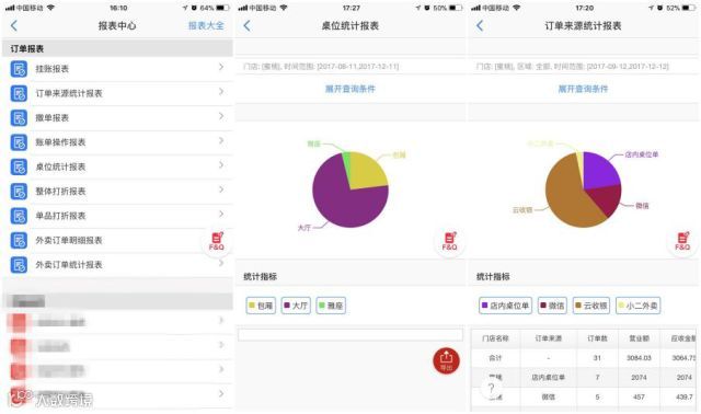 通过订单报表,餐厅老板可以清楚了解餐厅订单来源,挂账、撤单、打折优惠等情况,以及外卖销量,从而调整餐厅营运重心。