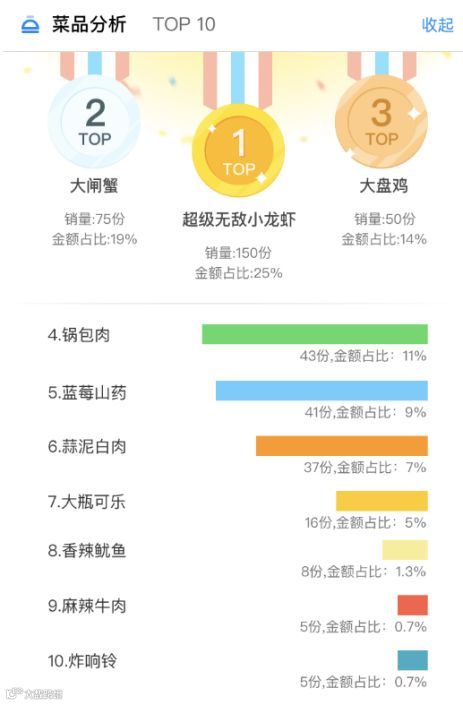 此外,餐饮老板还可通过二维火的菜品数据分析,清楚地了解店内哪些菜品受欢迎,可合理调整菜单,确定主打的销售菜品,调整菜品原材料的投入力度。