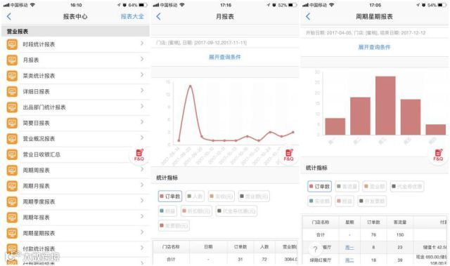 营业报表可以统计和呈现店铺各个时段、每天、每周、每月、每个季度的营业情况,餐饮老板可以根据这些报表数据清楚地掌握店铺详细的营业额、实收额、付款明细等数据,店铺每一天的生意好坏都能了如指掌。