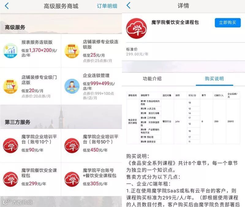 现在通过二维火高级服务商城的第三方服务板块,即可快速购买魔学院账号(SaaS版9元/人/年,目前有10和50个账号起售两个版本),之后就可以联系我们的客户经理采购课程以及获得产品使用培训和各种各样的增值服务啦!快来体验吧!