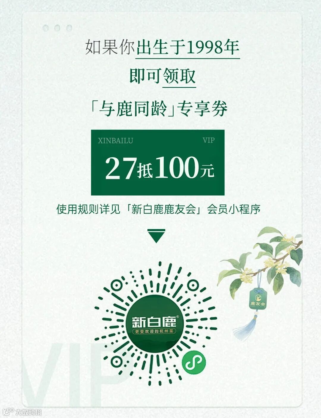 *长按识别图中小程序码,进入「新白鹿鹿友会」,领取福利,体验全新升级后的新白鹿小程序。