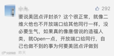 唐僧对此的回答是:你可以直接去问我们二维火的商户,只要是商家说需要开放的的第三方接口,我们有封杀么?某大型餐饮连锁店就有对接着我们竞对的接口。