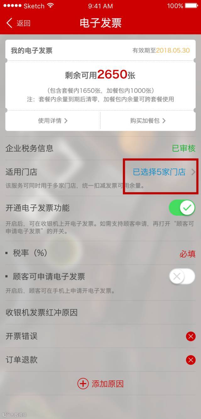 电子发票中的多店共用功能还能让多家店铺接入其中,统一用一家店铺的开票机器,大大节省了成本。