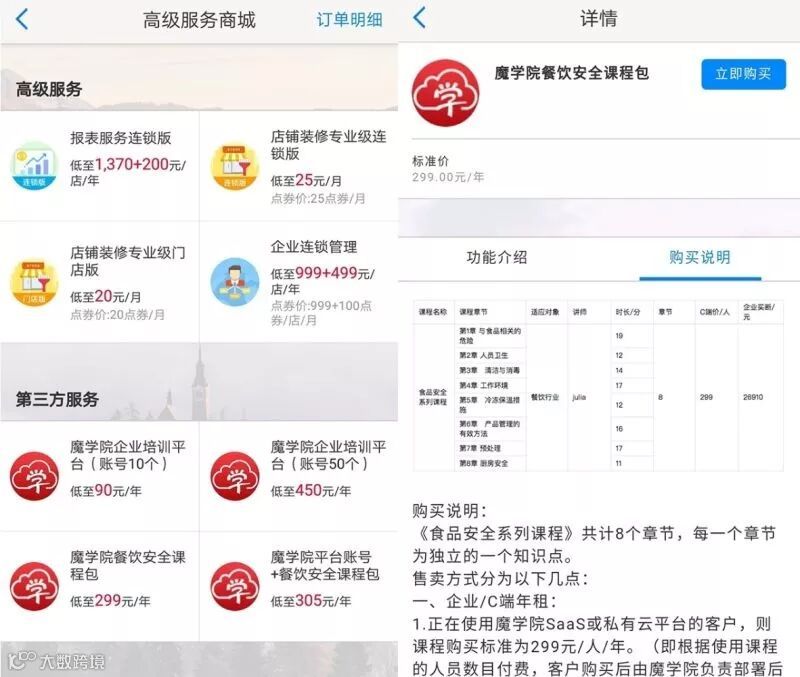 现在,通过二维火高级服务商城的第三方服务板块,即可快速购买魔学院账号(SaaS版9元/人/年,目前有10和50个账号起售两个版本),之后就可以联系我们的客户经理采购课程以及获得产品使用培训和各种各样的增值服务啦!快来体验吧!