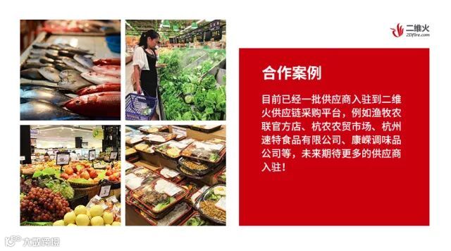 目前已有一批供应商入驻到二维火供应链采购平台,例如渔牧农联官方店、杭农农贸市场、杭州速特食品有限公司、康嵘调味品公司等,未来期待更多的供应商入驻!