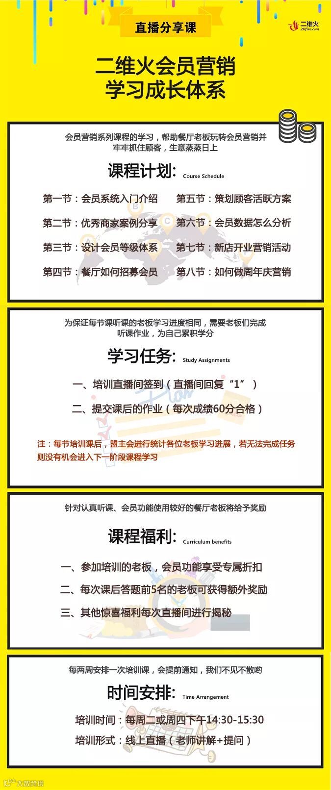 《餐饮如何快速招募会员》为二维火8节会员营销体系课中的第四节课,前面老板们已经听过《会员系统入门介绍》、《优秀商家案例分享》以及《2020会员体系搭建课程》,很多老板都表示很有收获。