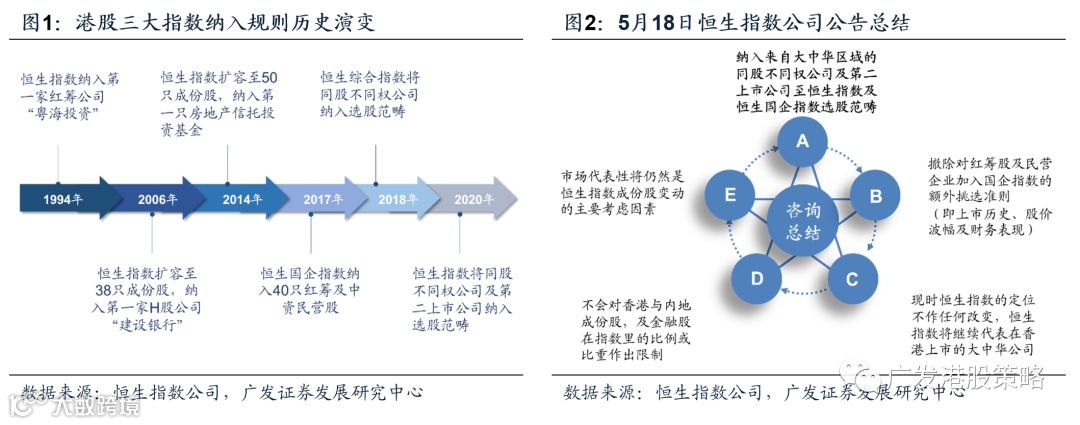 事件:5月18日,恒生指数公司发布《有关恒生指数及恒生中国企业指数应否纳入同股不同权公司及第二上市公司之咨询总结》,宣布同股不同权公司及第二上市公司正式被纳入恒生指数、国企指数选股范畴。这也是2018年恒生综指将同股不同权公司纳入选股范畴后,恒生指数公司又一次较为重大的纳入规则调整。除同股不同权与第二上市公司纳入恒指选股范畴外,本次咨询报告还涉及红筹股与中资民营股纳入国企指数的标准修改、恒生指数定位等其它内容。