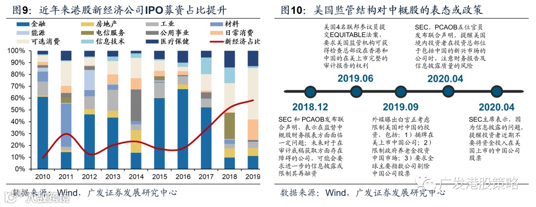 其四,吸引更多优质“新经济”公司与中概股赴港上市。18年上市制度改革后,港股掀起“新经济”公司上市热潮,而本次改革政策的延续,预计将进一步增强“新经济”公司赴港上市的信心。此外,在近两年美国监管机构多次针对中概股发表不友好言论的背景下,新规对于回港上市的海外中概股也形成利好,未来或将吸引更多优质中概股回归。